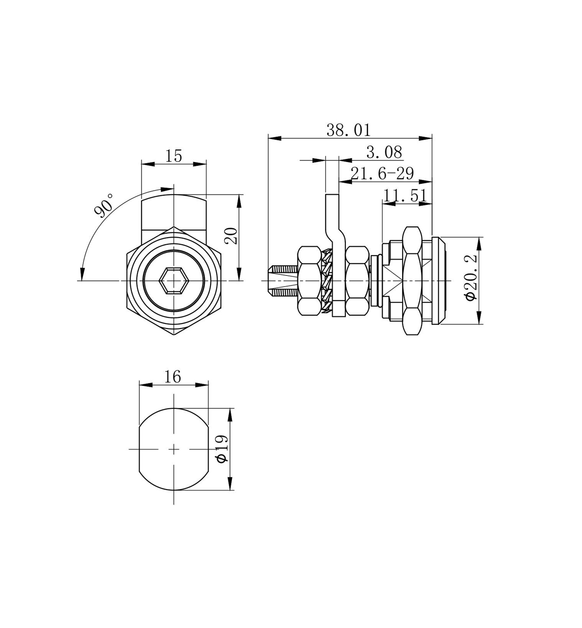 型號:MK407-8 材質:鋅合金 表面處理:亮鎳 適用范圍:金屬柜、木箱、配電箱、配電柜、服務器、通訊柜、寄存柜、火車、機車、售貨亭、轎廂、信箱和工具箱等。 特點: 1、直舌片
