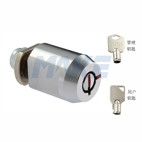 ●產品介紹 美科管狀轉舌鎖舌片鎖MK100-32,配備管理鑰匙系統,擁有兩把鑰匙,一把為管理鑰匙,一把是客用鑰匙,管理鑰匙調節位置不同,客用鑰匙效用不同。其安裝簡便,價格低,用途廣泛,所以又叫寄存柜鎖,更衣柜鎖,桑拿鎖,信箱鎖等。是工業鎖具和商用鎖具中常見鎖具之一。