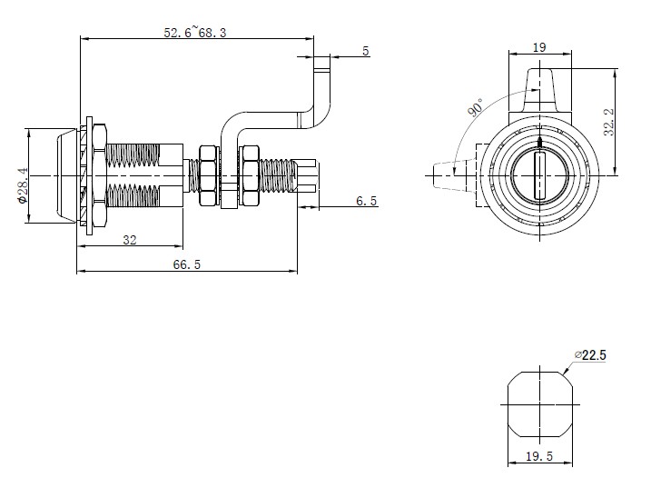 美科機箱機柜鎖MK413,鋅合金材質,帶折彎舌片,一字型鑰匙,支持定制,常做為配電箱鎖,電表箱鎖等。