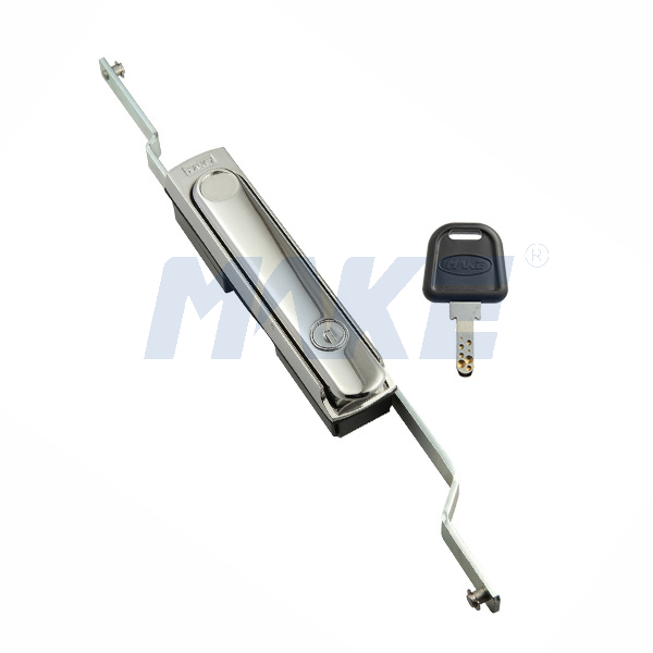 ●產品介紹 美科連桿鎖 換電柜鎖 MK401,是一款常用的重型把手鎖。采用鋅合金材料制作而成,表面鍍鉻設計,金屬色外觀,配備雙面彈子鑰匙系統,開鎖體驗順暢,操作便捷。常做為充電樁鎖,通訊柜鎖,電表箱鎖,配電箱鎖,廣告機鎖、換電柜鎖等