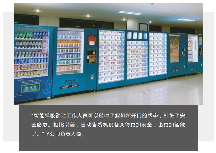 “智能彈吸鎖讓工作人員可以隨時(shí)了解機(jī)器開門的狀態(tài),杜絕了安全隱患。相比以前,自動(dòng)售貨機(jī)設(shè)備變得更加安全,也更加智能了。” Y公司負(fù)責(zé)人說。