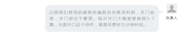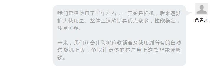 “通過試用這款產(chǎn)品我們發(fā)現(xiàn)它有許多亮點(diǎn),比如操作簡(jiǎn)單便捷,解決了設(shè)備的運(yùn)營(yíng)效率低、開關(guān)門時(shí)間長(zhǎng)、容易被盜被撬等問題。”