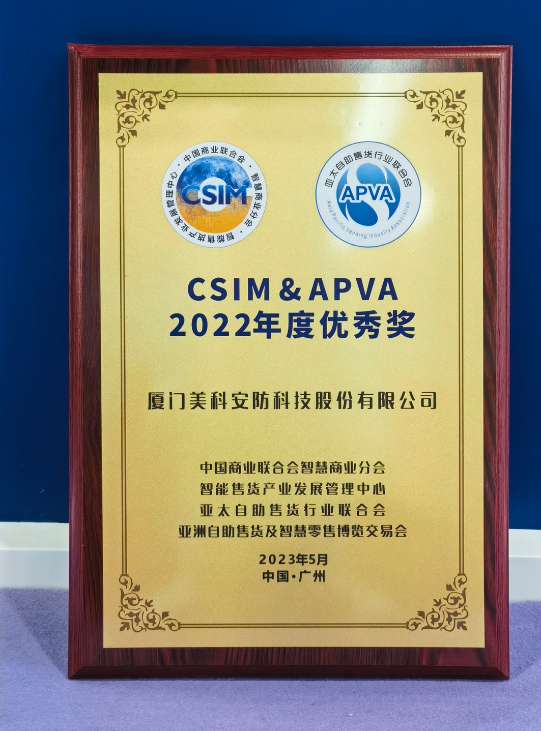 展會上,美科憑借優(yōu)質(zhì)的產(chǎn)品和研發(fā)創(chuàng)新能力,榮獲中國商業(yè)聯(lián)合會與亞太自助售貨行業(yè)聯(lián)合會(簡稱:CSIM&APVA) 2022年度優(yōu)秀獎。