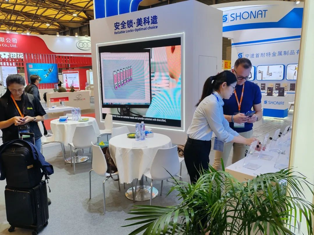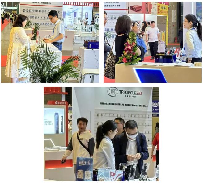 展位前人來人往。不少觀展者駐足了解并體驗產品,暢談鎖具和五金結構件新趨勢,分享市場新動態(tài)。