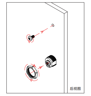 2、鎖緊鎖體:將適合門板厚度的螺絲插入預先鉆好的安裝孔,并用十字螺絲刀順時針旋緊,然后將螺母順時針旋入鎖體,并用扳手鎖緊。