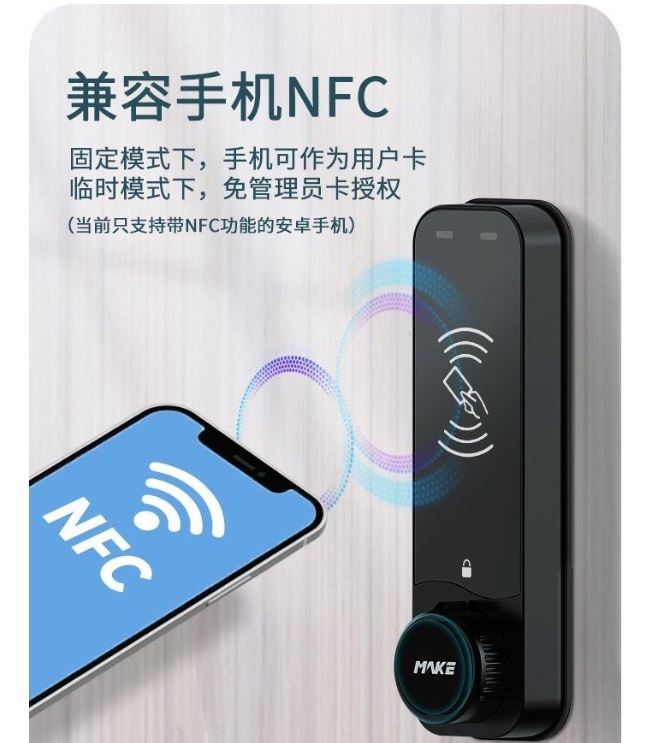 感應(yīng)電子鎖大多將卡片或手環(huán)作為開(kāi)鎖鑰匙,很多時(shí)候容易忘記攜帶或遺失,造成不必要的麻煩。MK729兼容手機(jī)NFC功能,在開(kāi)鎖時(shí)可以通過(guò)NFC取代卡片或手環(huán),省去使用煩惱。